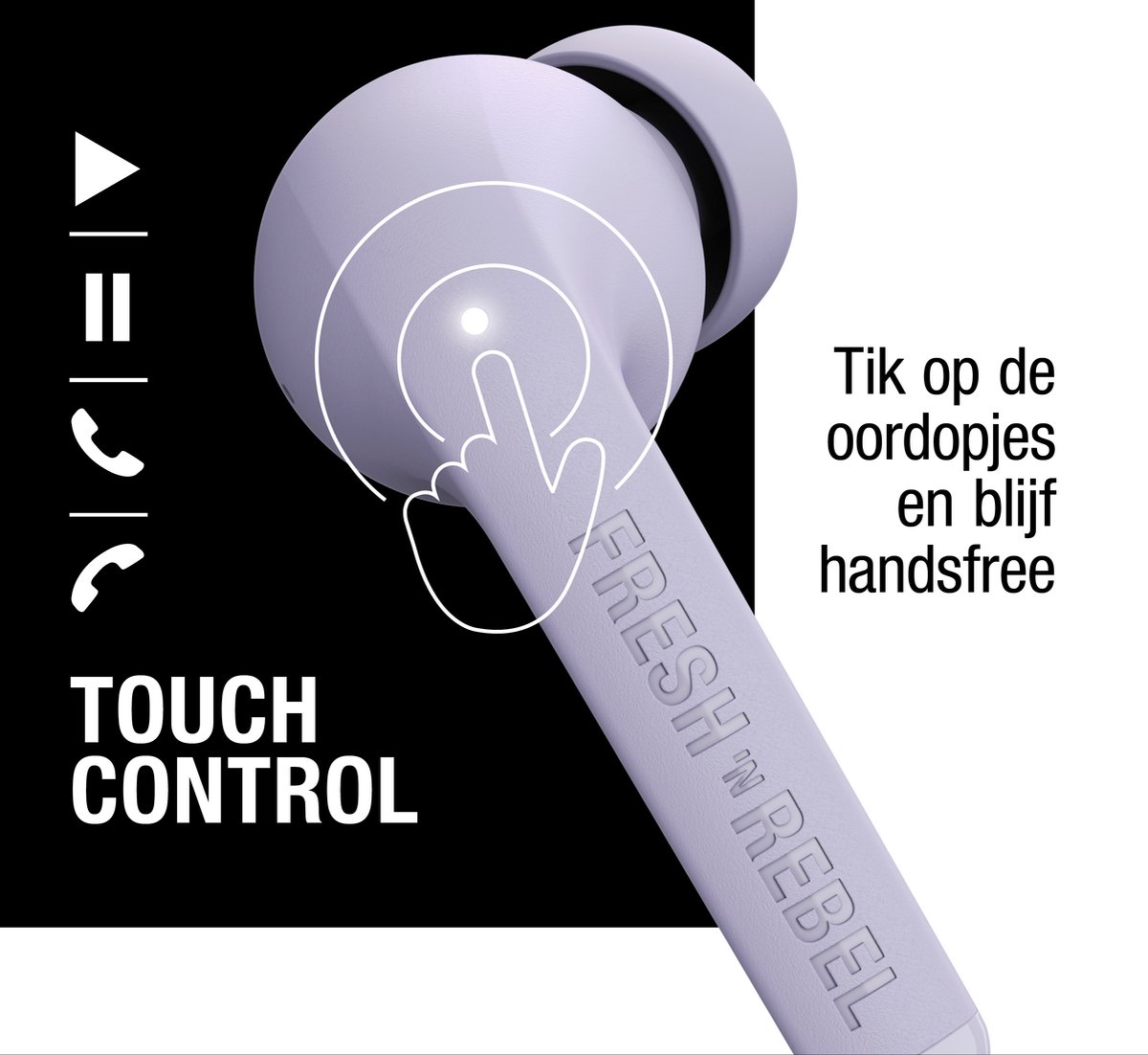 - Intuïtieve bediening: Bedien je muziek, beantwoord telefoongesprekken of activeer je spraakassistent eenvoudig door op de oordoppen te tikken. Welke handeling je ook nodig hebt, alles ligt binnen handbereik, compleet zonder fysieke knoppen.