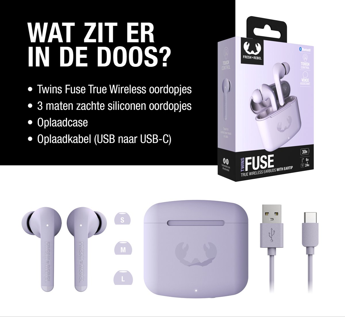 - Twins Fuse oordopjes en oplaadcase