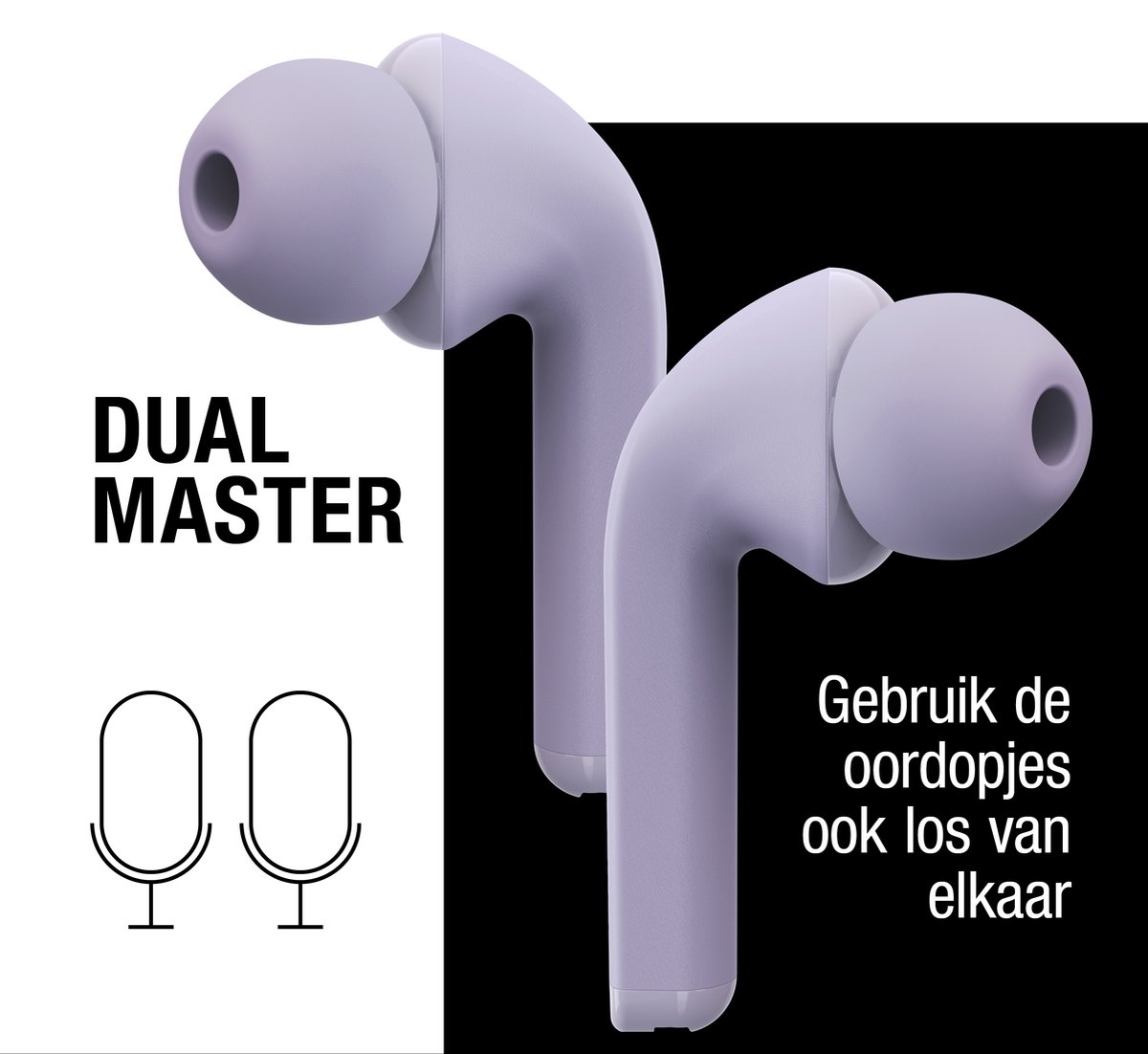 - Los van elkaar te gebruiken: Met ingebouwde microfoons in beide oordoppen, kun je ze niet alleen in duo gebruiken, maar ook afzonderlijk. Perfect voor multitasking of wanneer je slechts één oor wilt gebruiken.