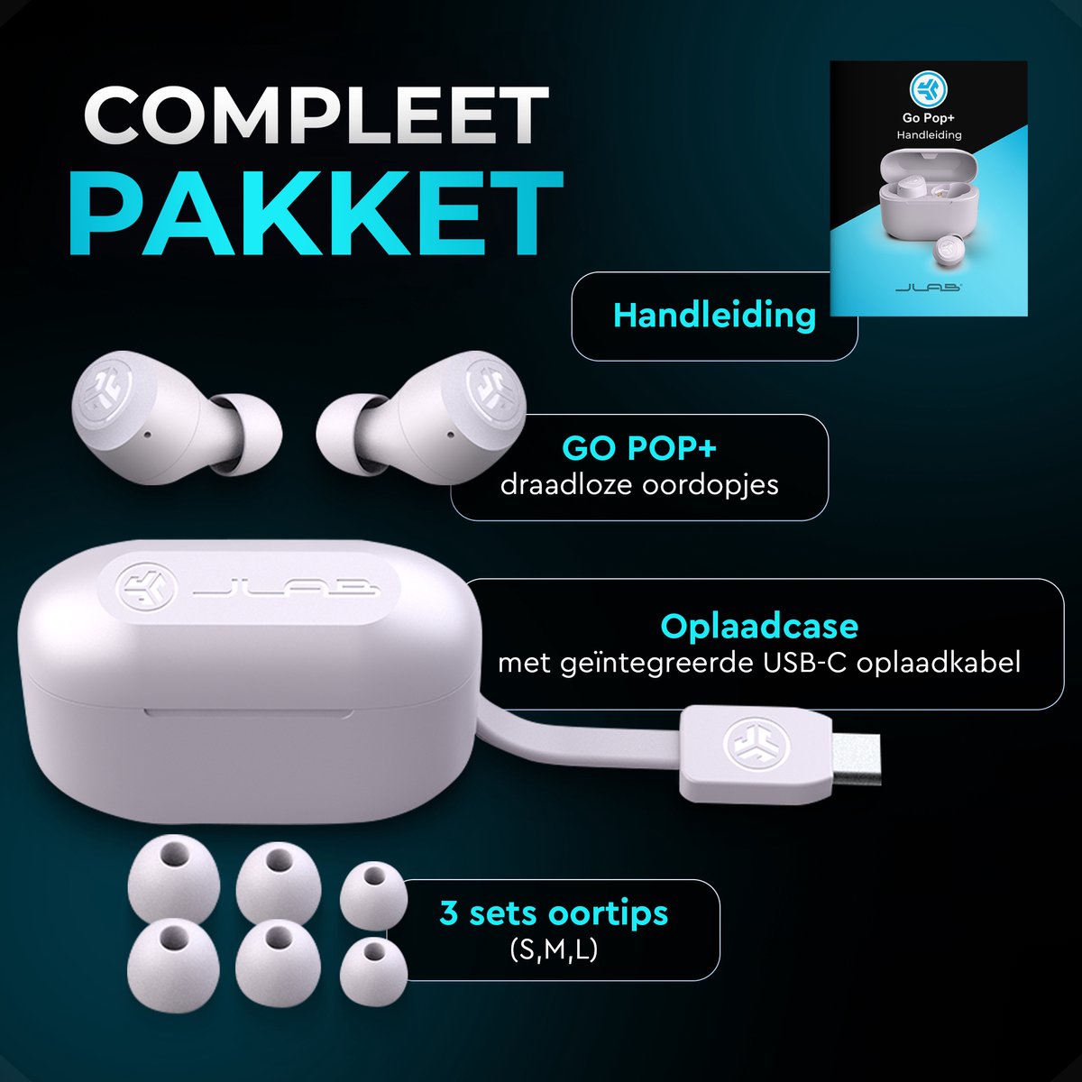 Maak van elk moment een topaudio-ervaring met de JLab Go Pop draadloze oordopjes — klein van formaat, groot in prestaties!