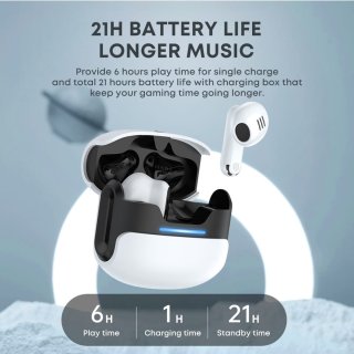 Het moderne, lichte ontwerp (productgewicht ca. 150 g) zit comfortabel en ziet er stijlvol uit — perfect voor gamers die waarde hechten aan uitstraling en draagcomfort. Met IPX5‑spatwaterbestendigheid zijn de oordopjes bestand tegen zweet en lichte regen, ideaal voor dagelijks gebruik en sport.
