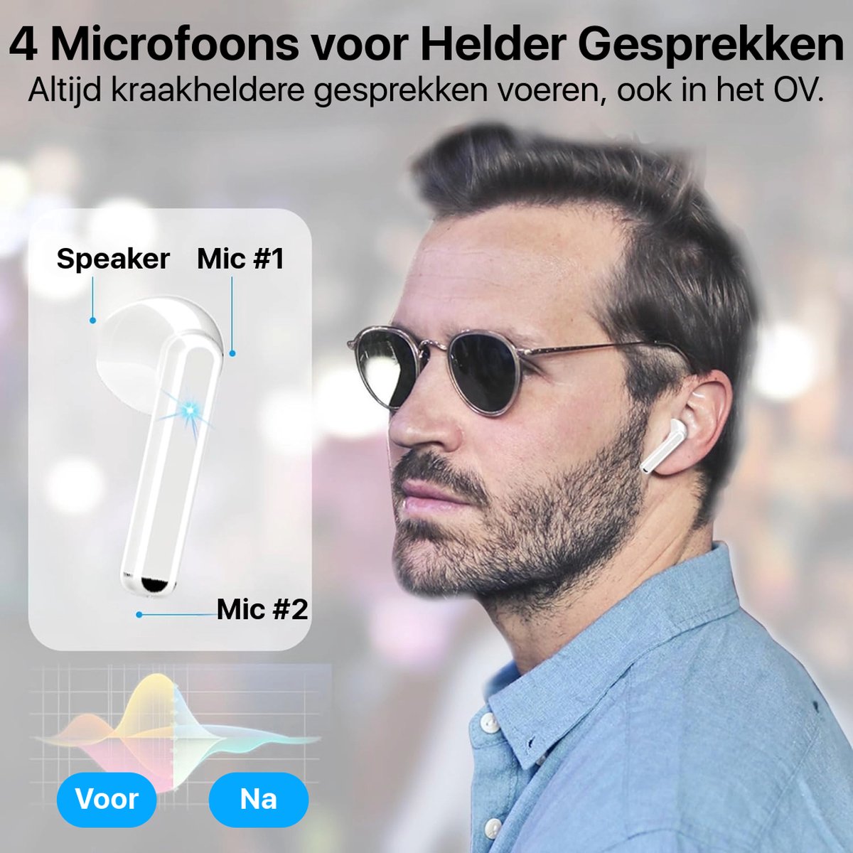 Met de nieuwste Bluetooth 5.3 technologie geniet je van een stabiele en snelle verbinding, met een bereik tot 15 meter. Hierdoor blijven je oordopjes moeiteloos verbonden, of je nu in beweging bent of even je telefoon laat liggen. Bovendien zorgen de lage vertraging en automatische reconnection voor een probleemloze streamingervaring, perfect voor het luisteren van je favoriete muziek of het voeren van belangrijke gesprekken.