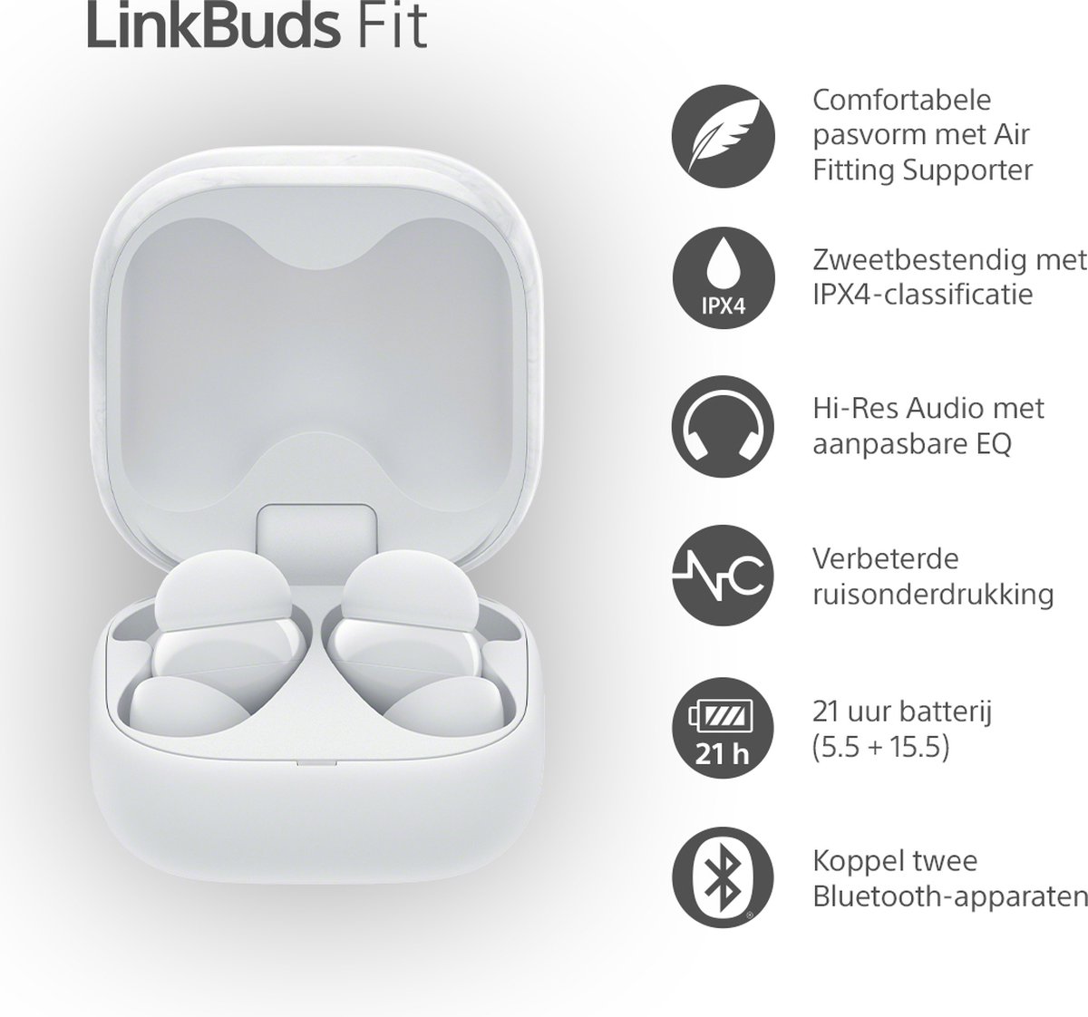 Met de Sony LinkBuds Fit combineer je professionele audio, comfort en duurzaamheid, allemaal in één stijlvolle en praktische set earbuds. Ideaal voor sporters, reizigers en iedereen die graag van kwalitatief hoogstaand geluid geniet, waar ze ook zijn.
