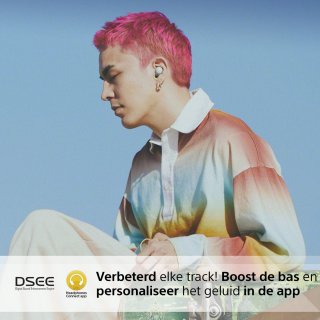 De WF-C700N leveren hoogwaardig geluid dankzij DSEE (Digital Sound Enhancement Engine), dat gecomprimeerde muziek digitaal herstelt naar een rijkere, opname-nabijere kwaliteit. Je personaliseert het geluid eenvoudig via de Sony Headphones Connect-app: van krachtige bas tot kristalheldere hoge tonen. Ondersteuning voor 360 Reality Audio zorgt voor een meeslepende luisterervaring wanneer je content in dat formaat beschikbaar is.